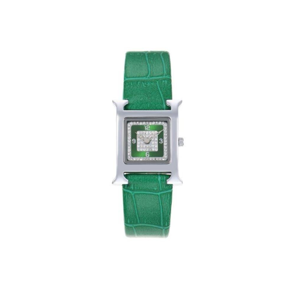ساعة نسائية هيور اتش أخضر بإطار فضي