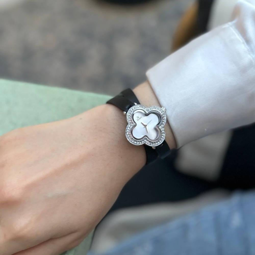 - تتميز الساعة أيضًا بتصميمها الفريد الذي يجمع بين اللونين الفضي والاسود، مما يمنحها مظهرًا أنيقًا وجذابًا.